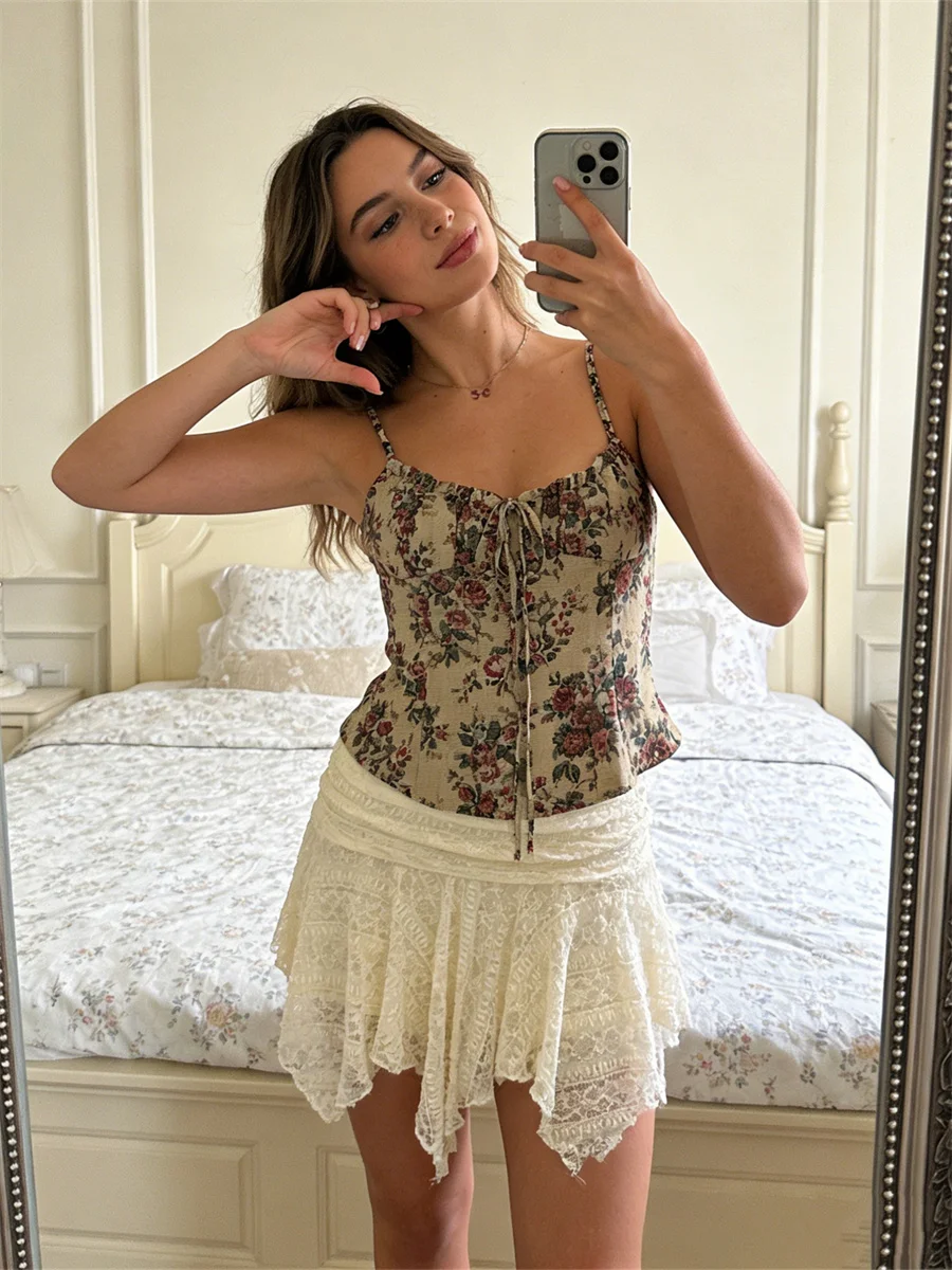 Women Mini Skirt, Elastic High Waist Lace Trim Irregular Skirt Summer Skirt Streetwear for Casual Daily