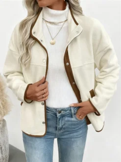 Women Casual Jacket, Long Sleeve Contrast Color Button Closure Fall Jacket Outwear