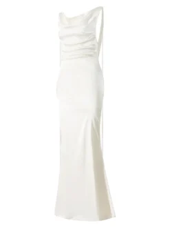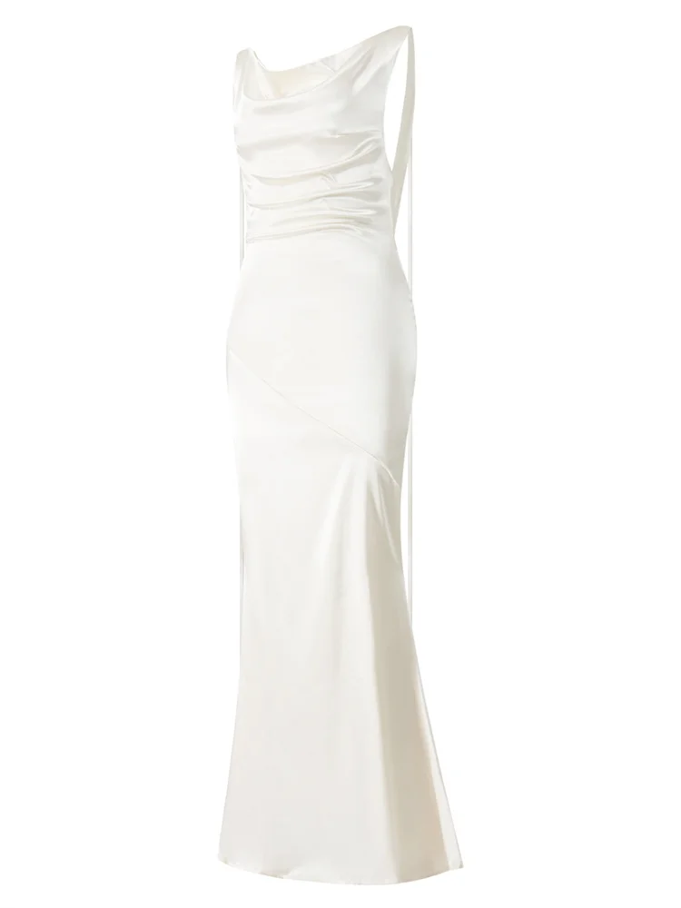 Women Long Dress, Sleeveless Draped Neck Backless Lacing Slim Fit Dress for Party Cocktail Evening