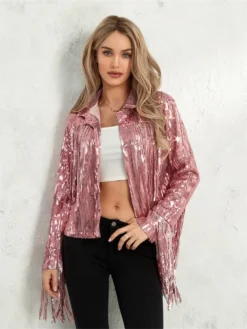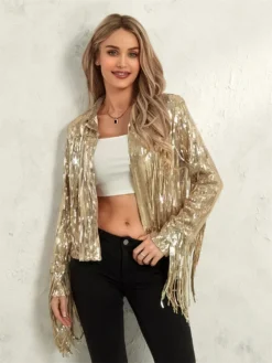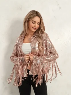 Women's Sequin Party Jackets Sparkly Long Sleeve Open Front Tassel Jackets Blazers Clubwear