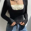 Women's Dot Cap Sleeve Tops Summer Casual Fashionable Square Neck Slim Fit T Shirt