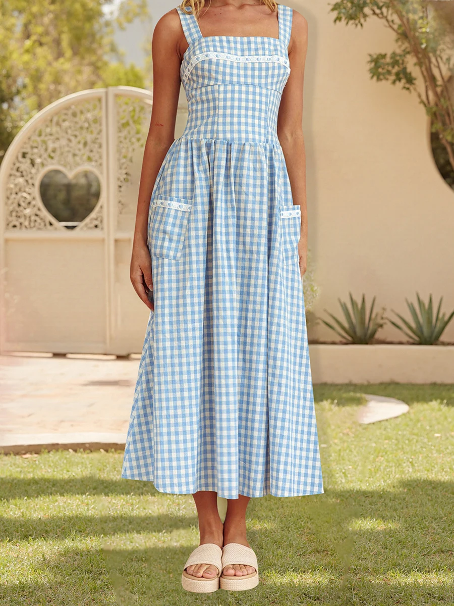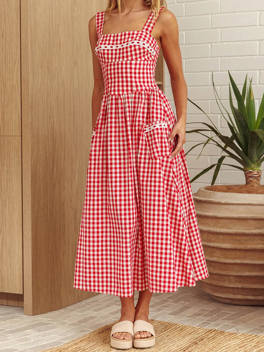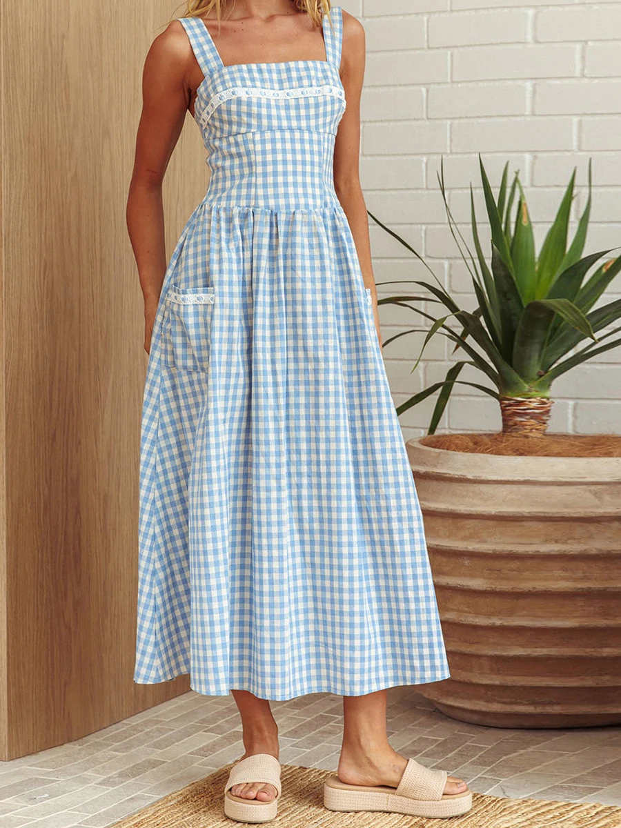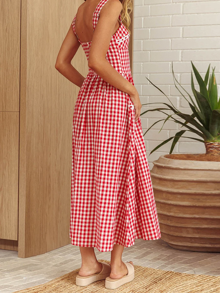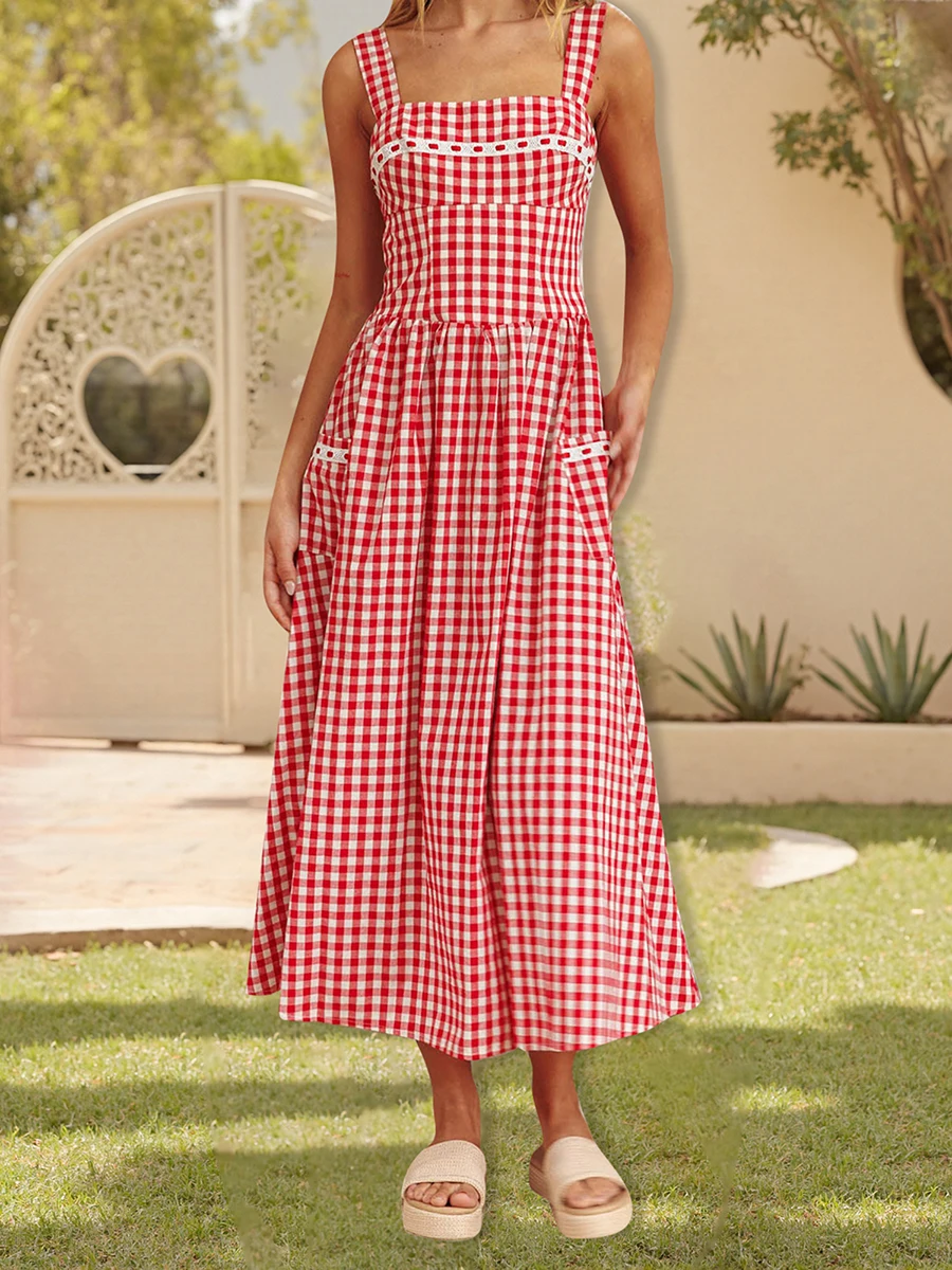 Women’s Plaid Long Cami Dress Summer