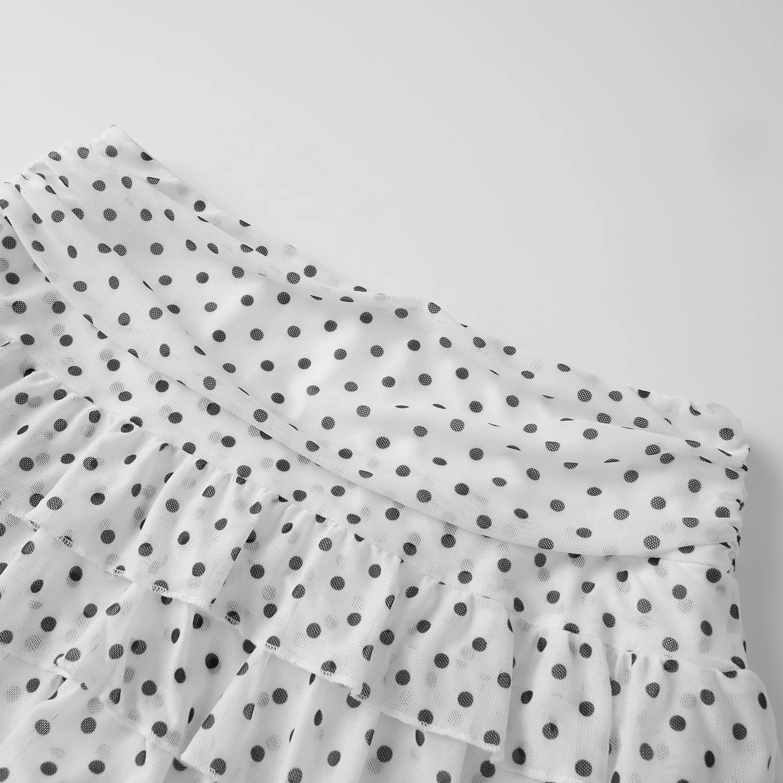 Women’s Summer Mini Skirt Casual Stylish Dot Print Layered Ruffled Mid Rise Short Skirt