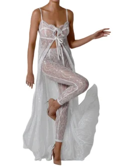 Womens Summer Long Beach Dress Sleeveless Backless Sheer Lace Split Bikini Cover Up